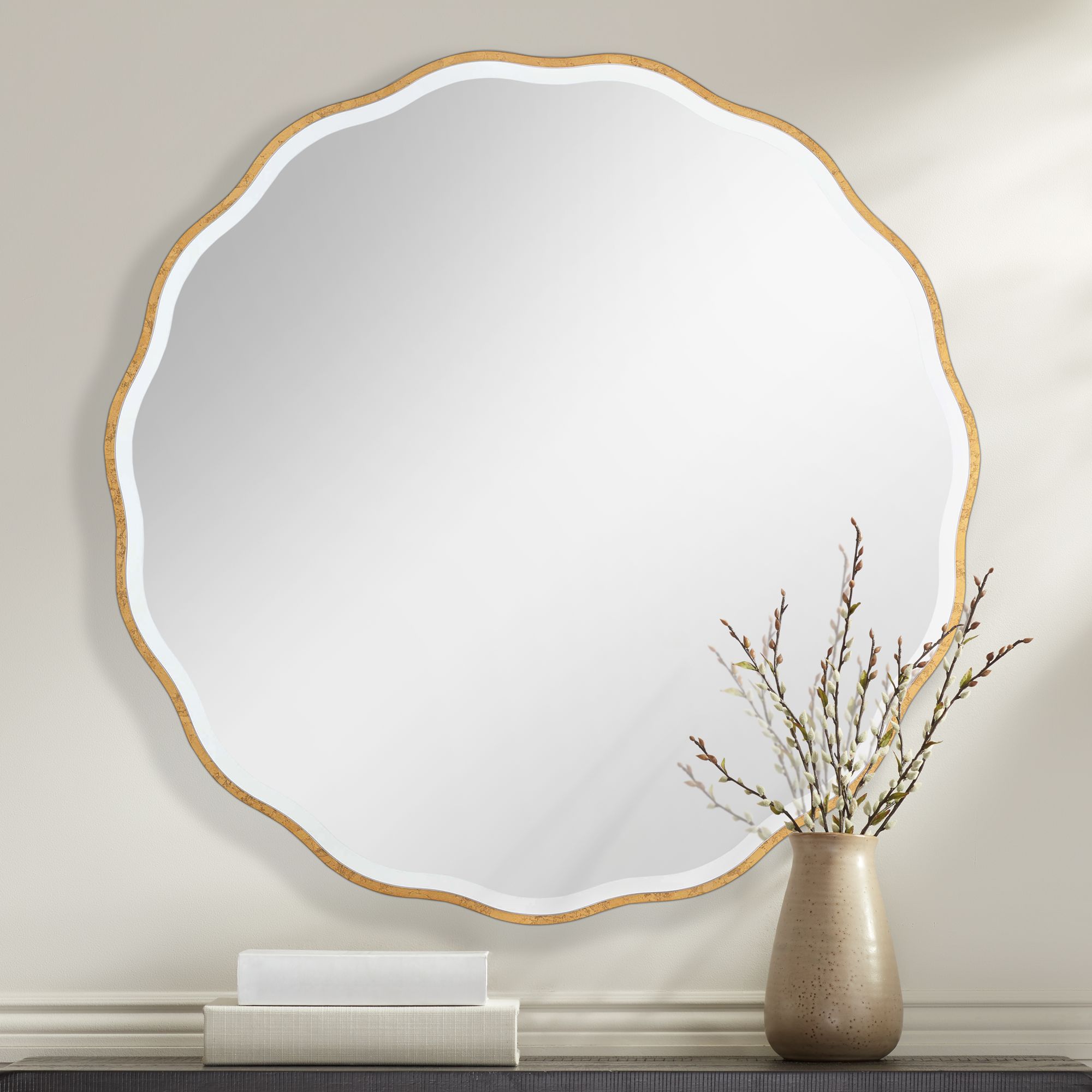 Modern Glamour Candice Gold Leaf 32" Round Wall Mirror