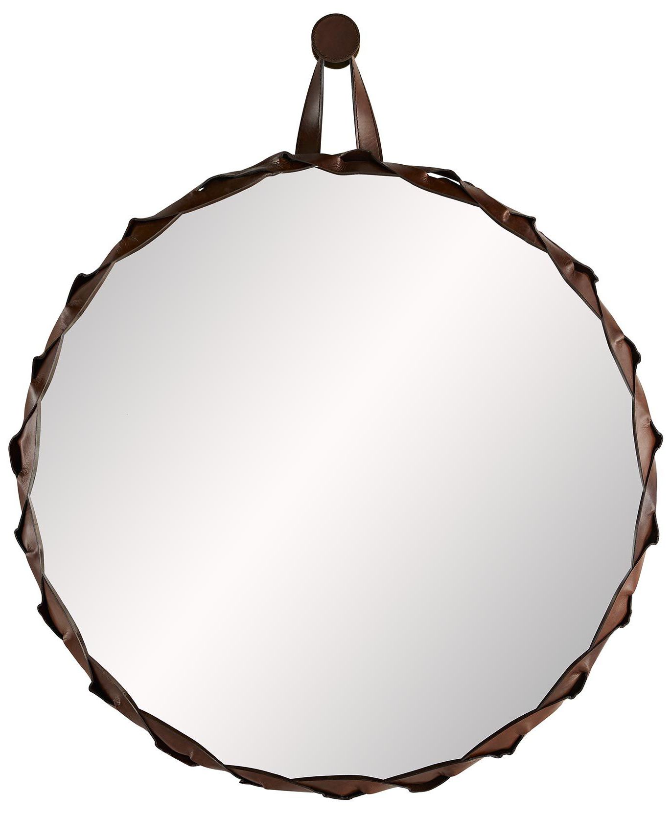 Powell Tobacco-Hued Leather 32" Round Wall Mirror