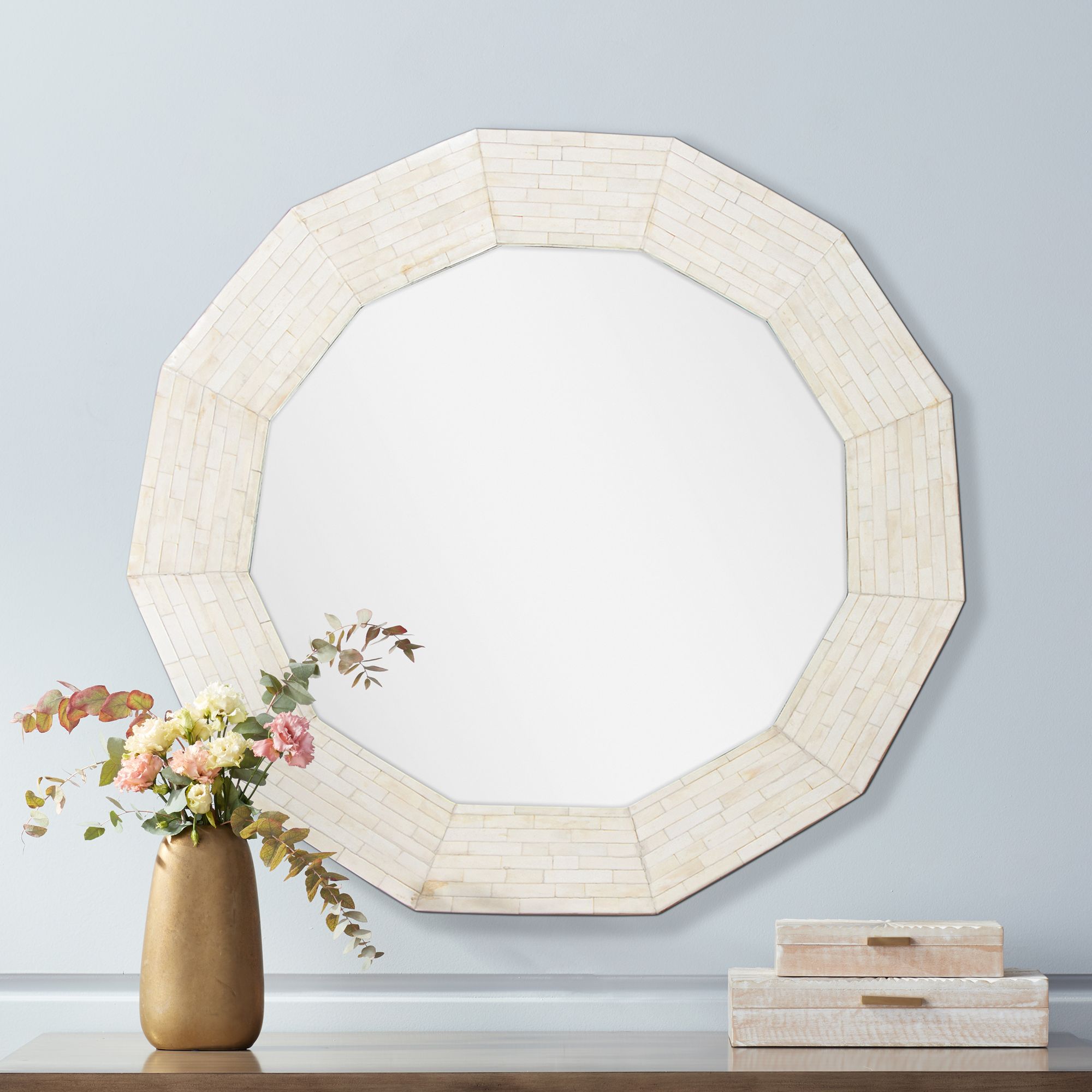 Regina Andrew Design Ares Natural Bone 30" Round Wall Mirror