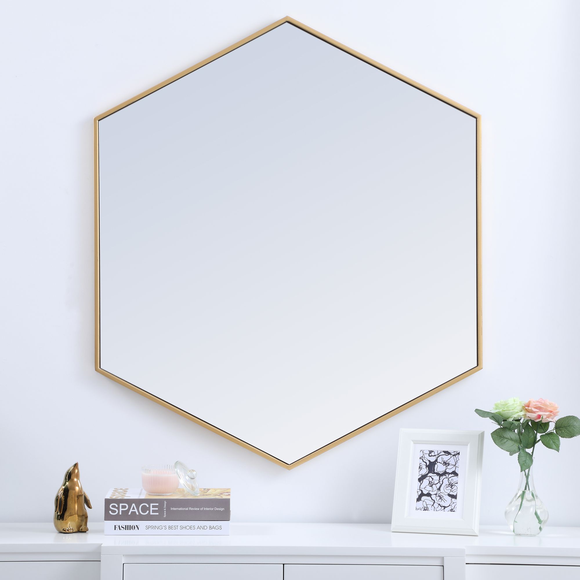 Decker Brass 35" x 41" Hexagon Vanity Wall Mirror