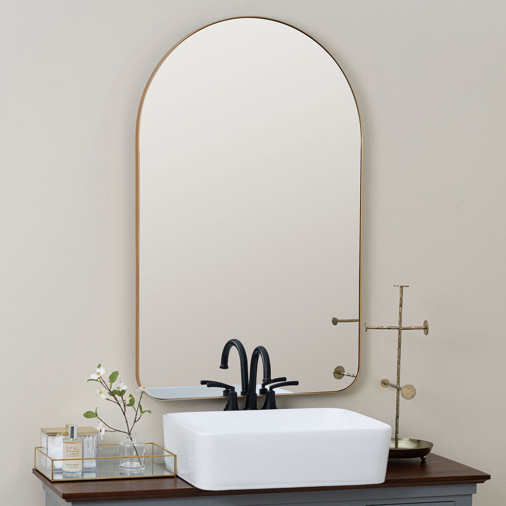 Jamie Young Bardot Bone and Wood 24" x 40" Arch Wall Mirror