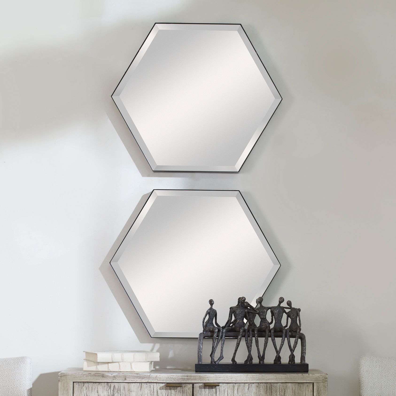 Amaya Black 23 1/4" x 20 1/4" Hexagon Wall Mirrors Set of 2