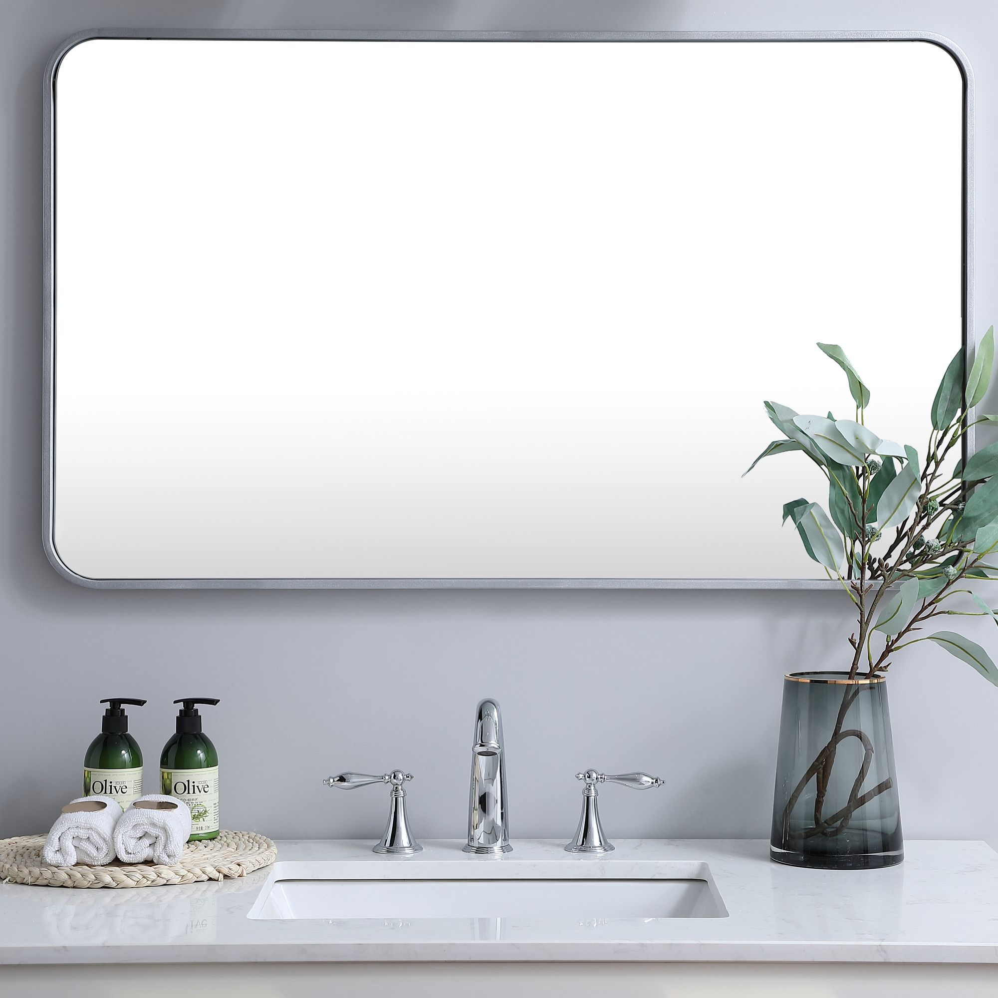 Elegant Lighting 32 x 24 Soft Corner Metal Rectangular Silver Wall Mirror