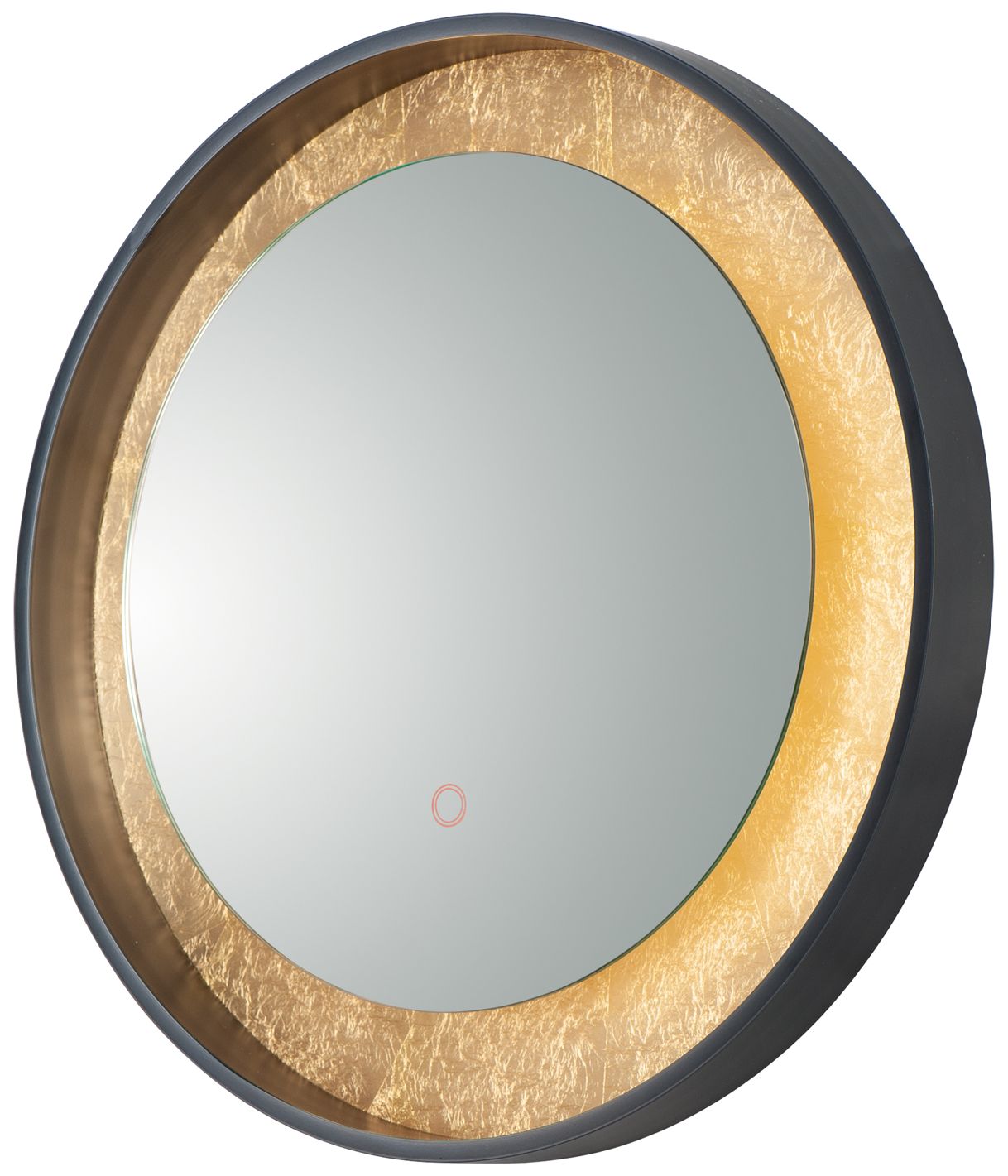 Floating Gold Leaf and Black 23 1/2" Round Plug-In LED Wall Mirror
