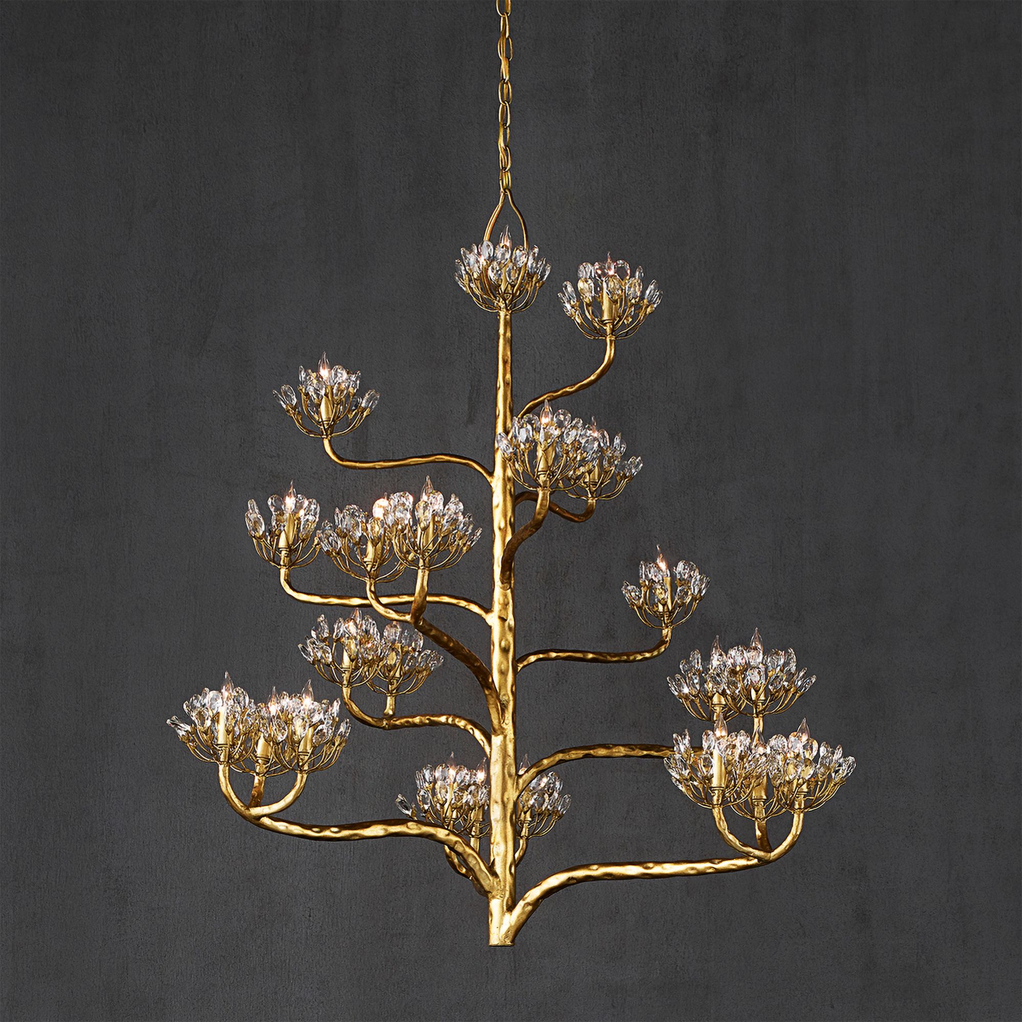 Currey & Company Agave Americana 42" 22-Light Gold Leaf Chandelier