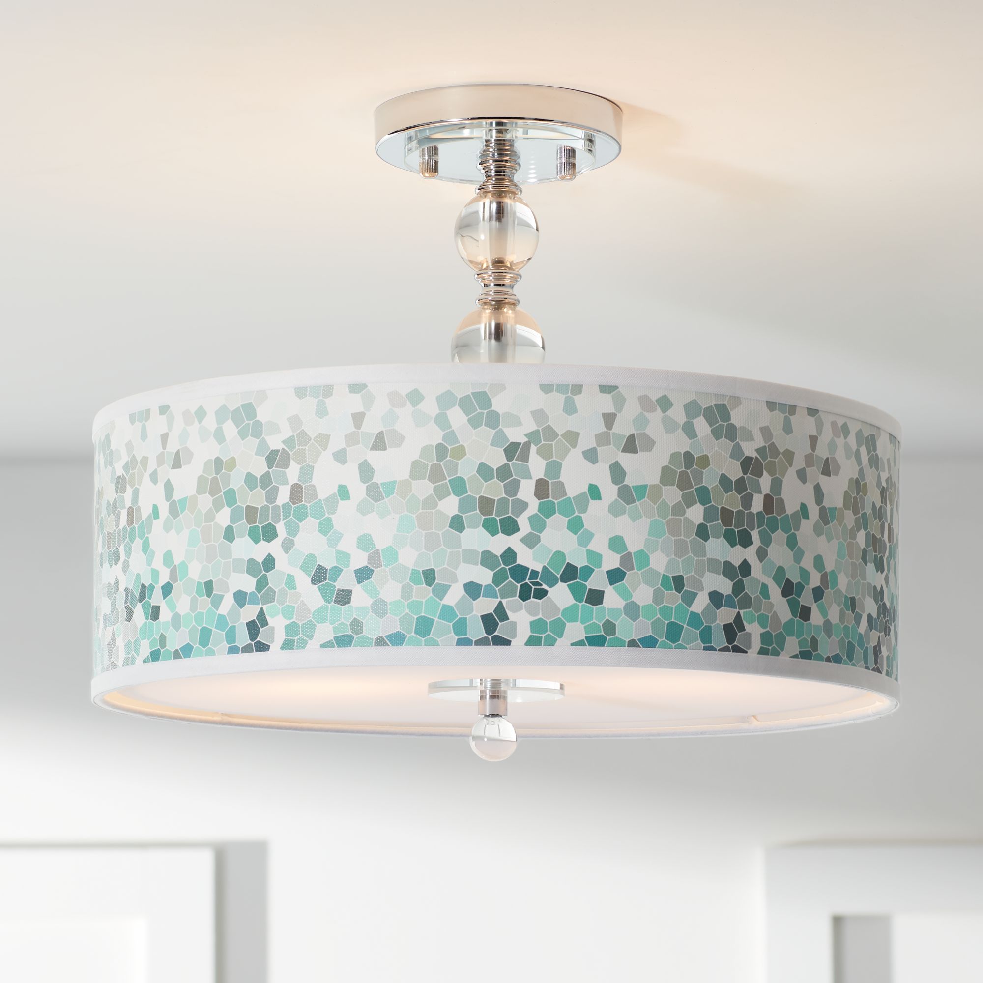 Giclee Gallery Aqua Mosaic Giclee 16" Wide Semi-Flush Ceiling Light