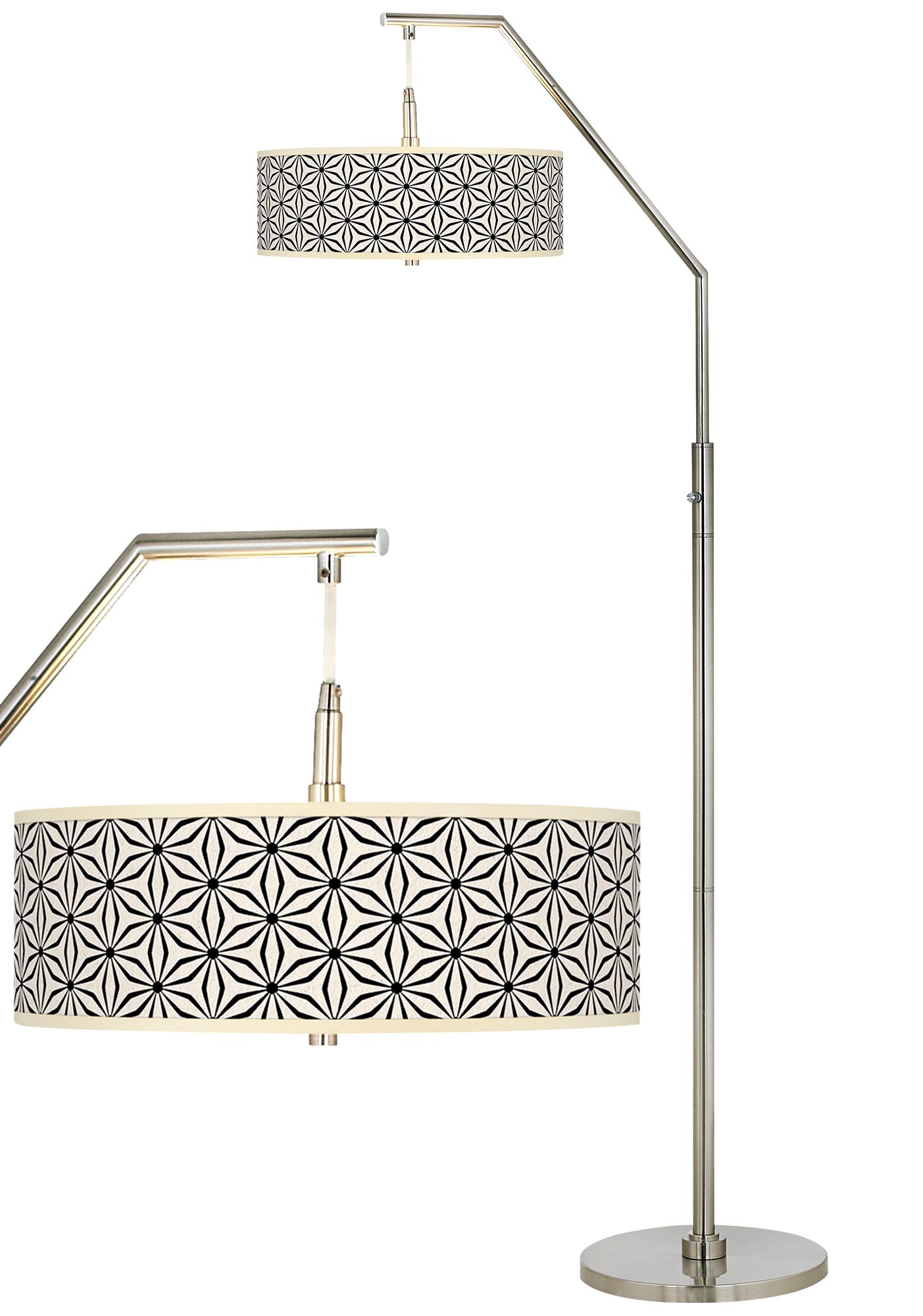 Black Horizontal Stripe Giclee Shade Arc Floor Lamp