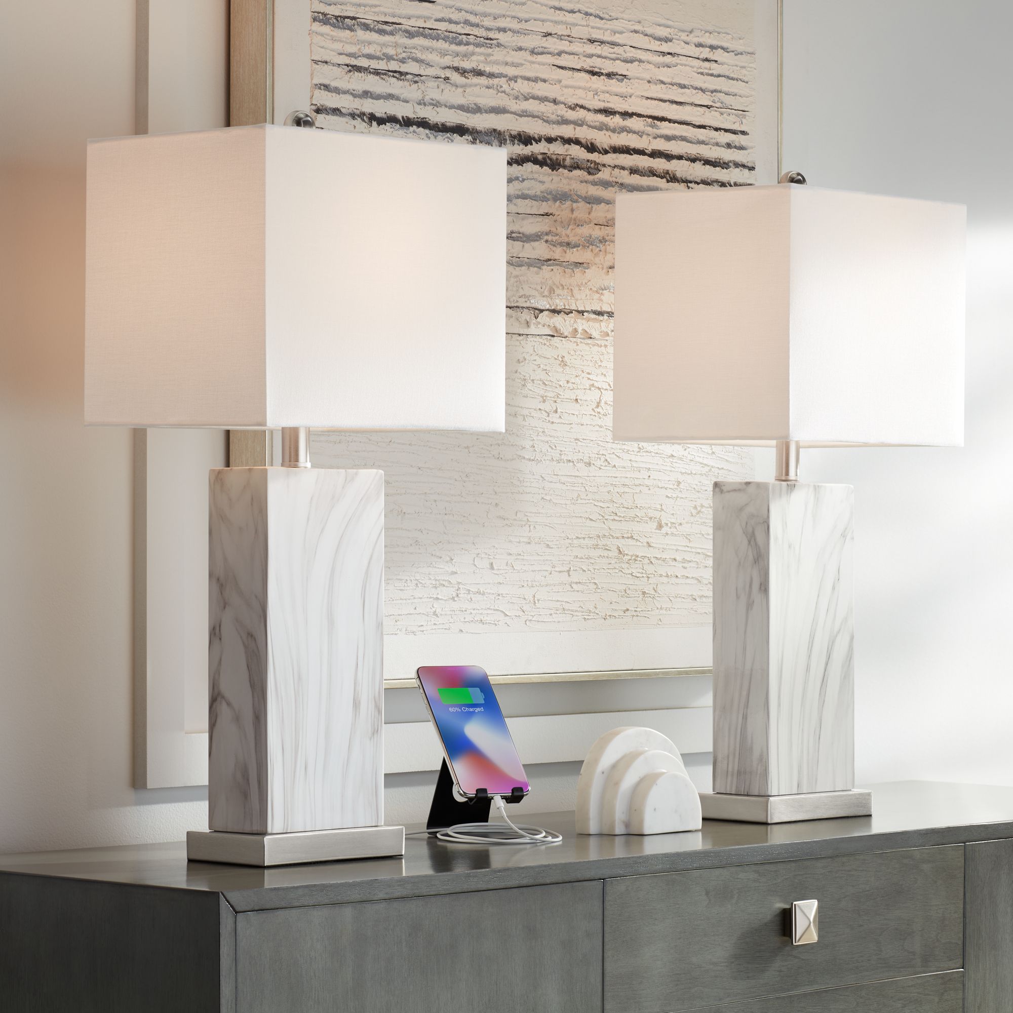 360 Lighting Connie 25" White Faux Marble USB Table Lamps Set of 2