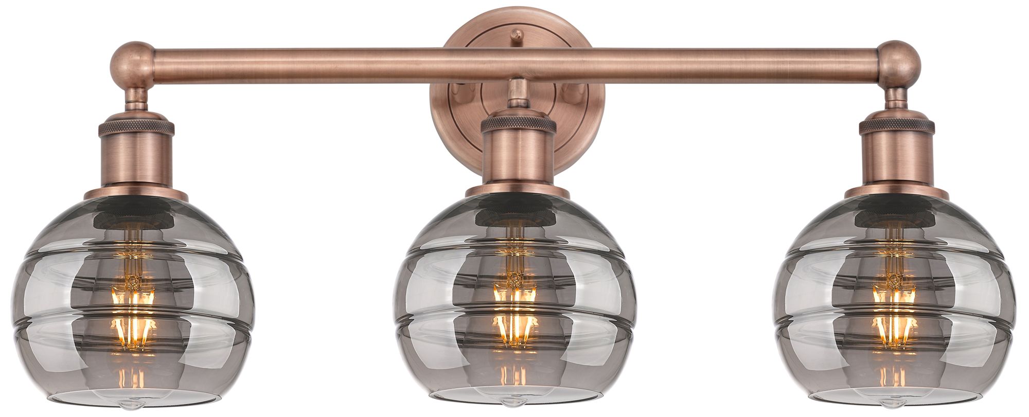 Edison Rochester 23.88"W 3 Light Copper Bath Light w/ Light Smoke Shad