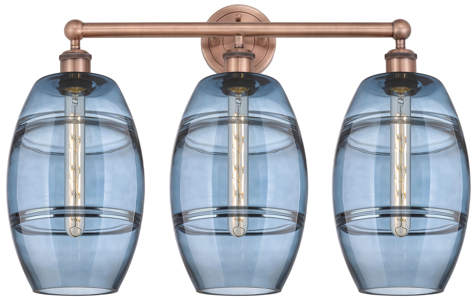 Edison Vaz 26"W 3 Light Antique Copper Bath Light w/ Princess Blue Sha
