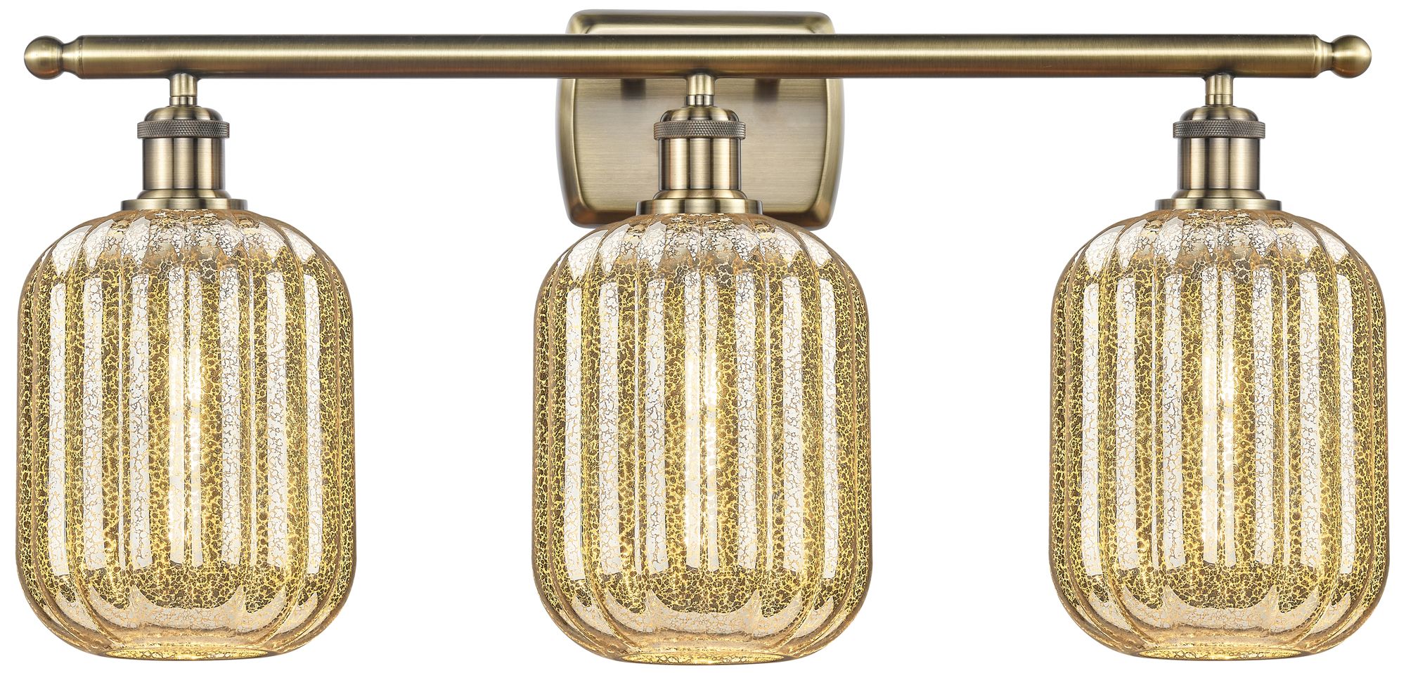 Ballston Preston 27"W 3 Light Brass Bath Light With Mercury Jar Shade
