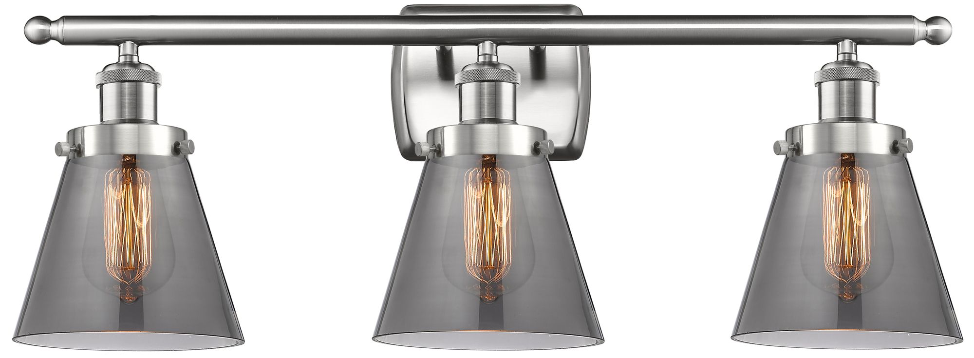 Ballston Urban Cone 26"W 3 Light Brushed Nickel Bath Light w/ Smoke Sh