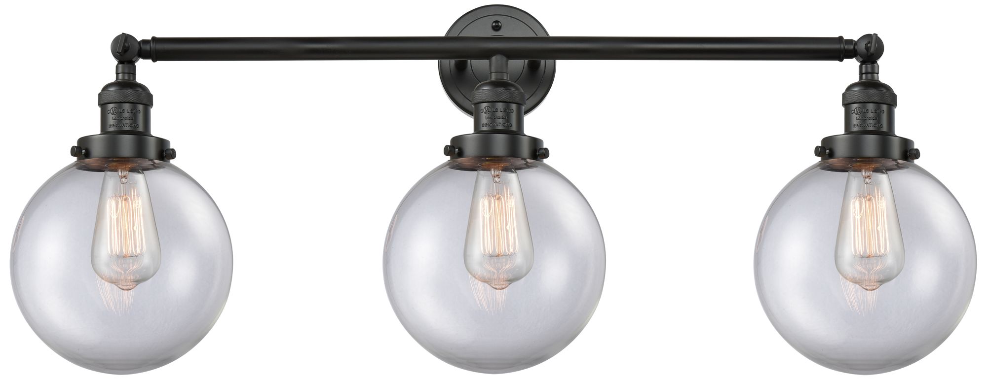 Beacon 3 Light 32" Bath Light - Matte Black - Clear Shade