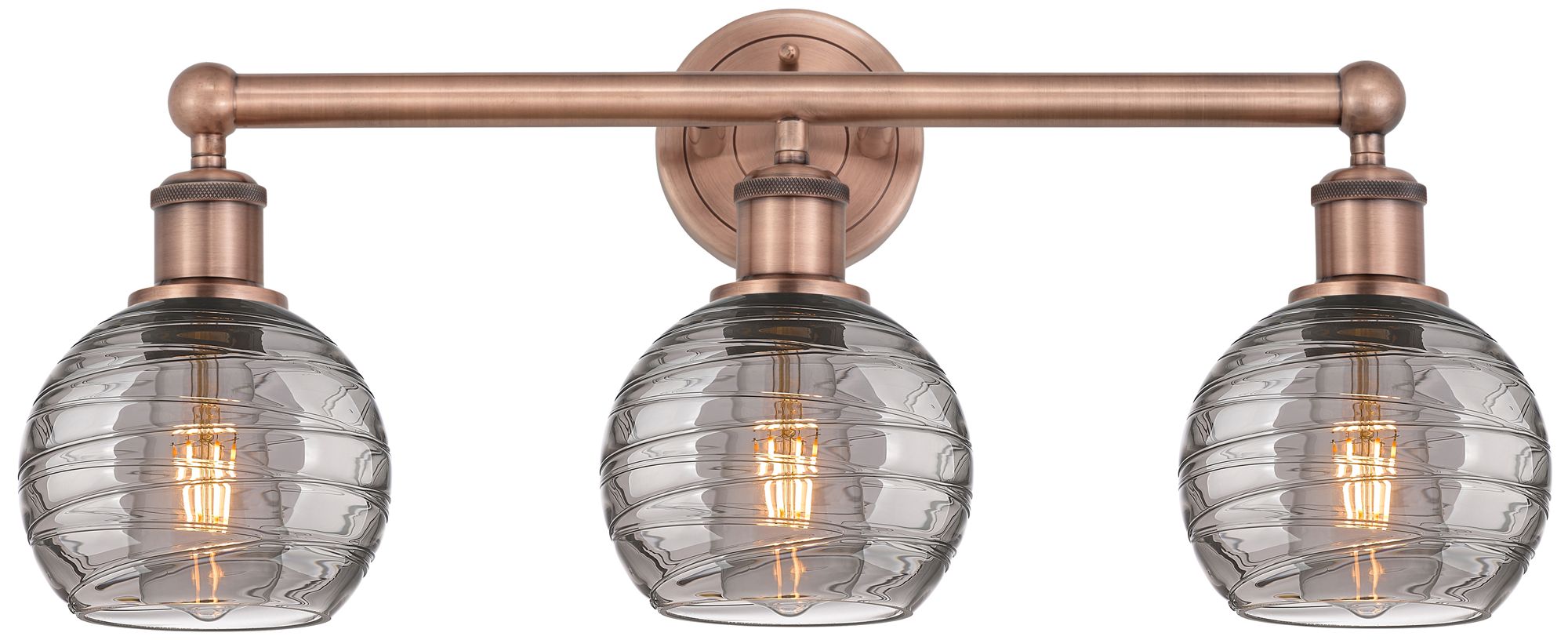 Edison Athens 23.88"W 3 Light Copper Bath Light w/ Smoke Swirl Shade