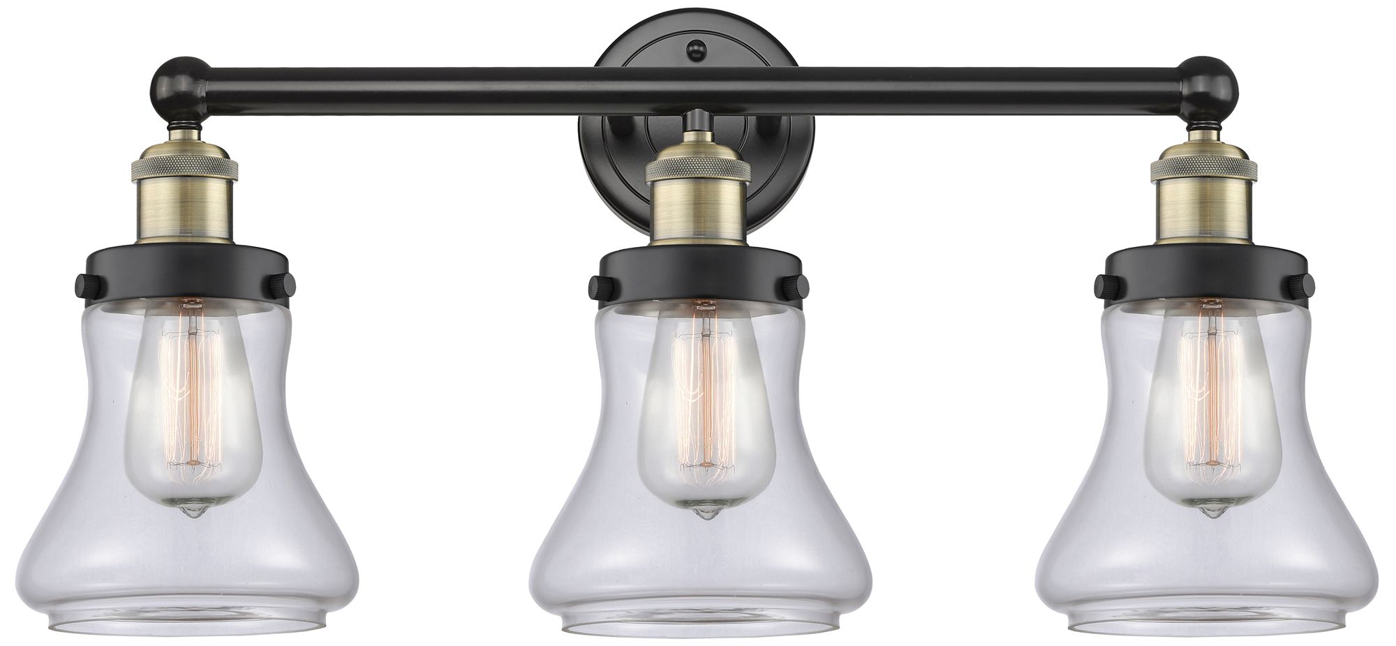 Edison Bellmont 24.5"W 3 Light Black Brass Bath Light With Clear Shade