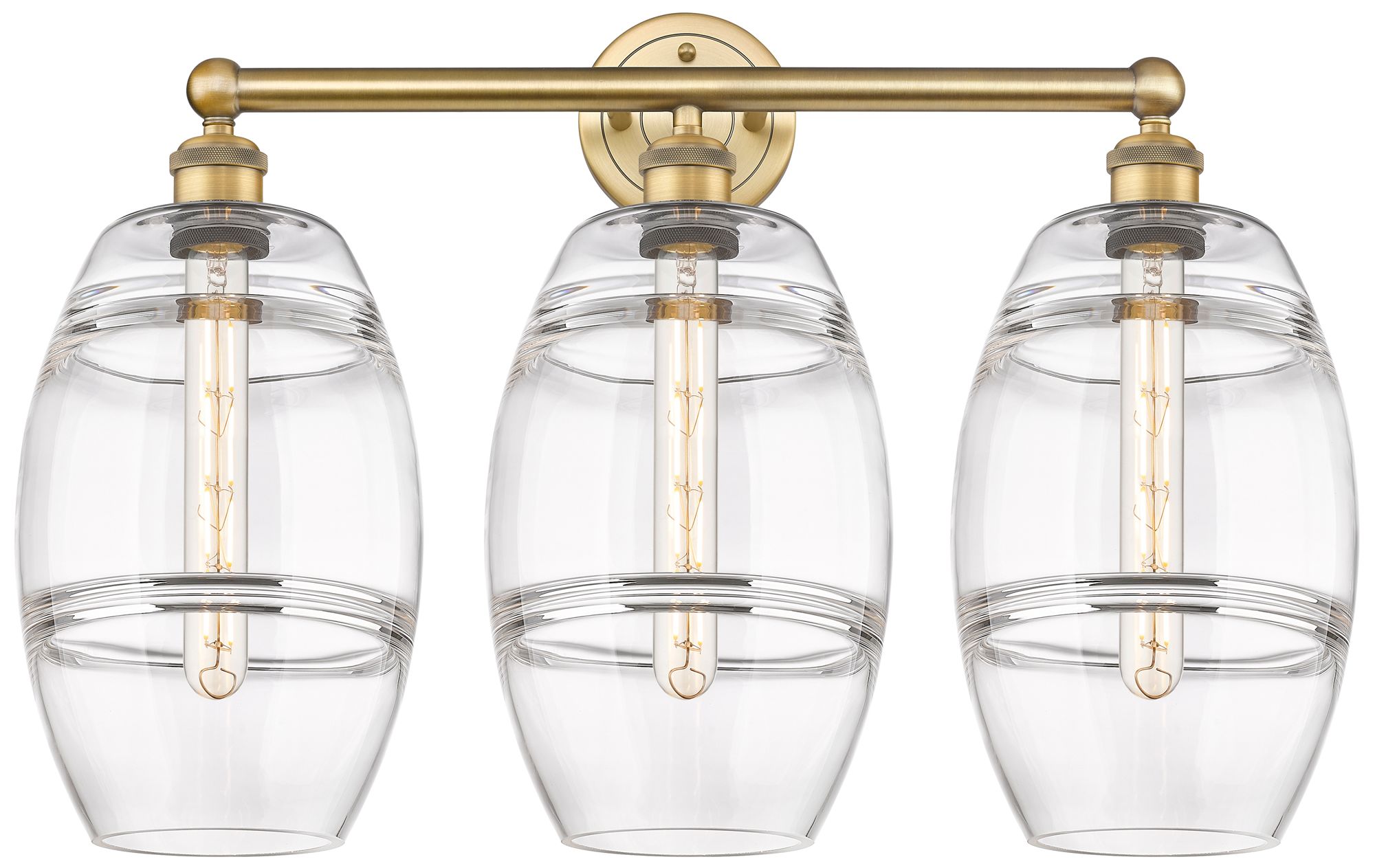 Edison Vaz 26" Wide 3 Light Brushed Brass Bath Light With Clear Shade