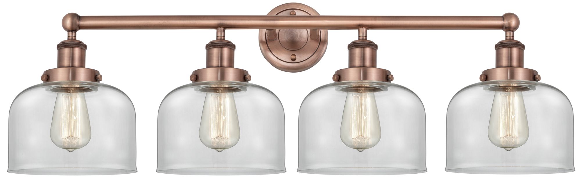 Large Bell 33.5"W 4 Light Antique Copper Bath Vanity Light With Clear