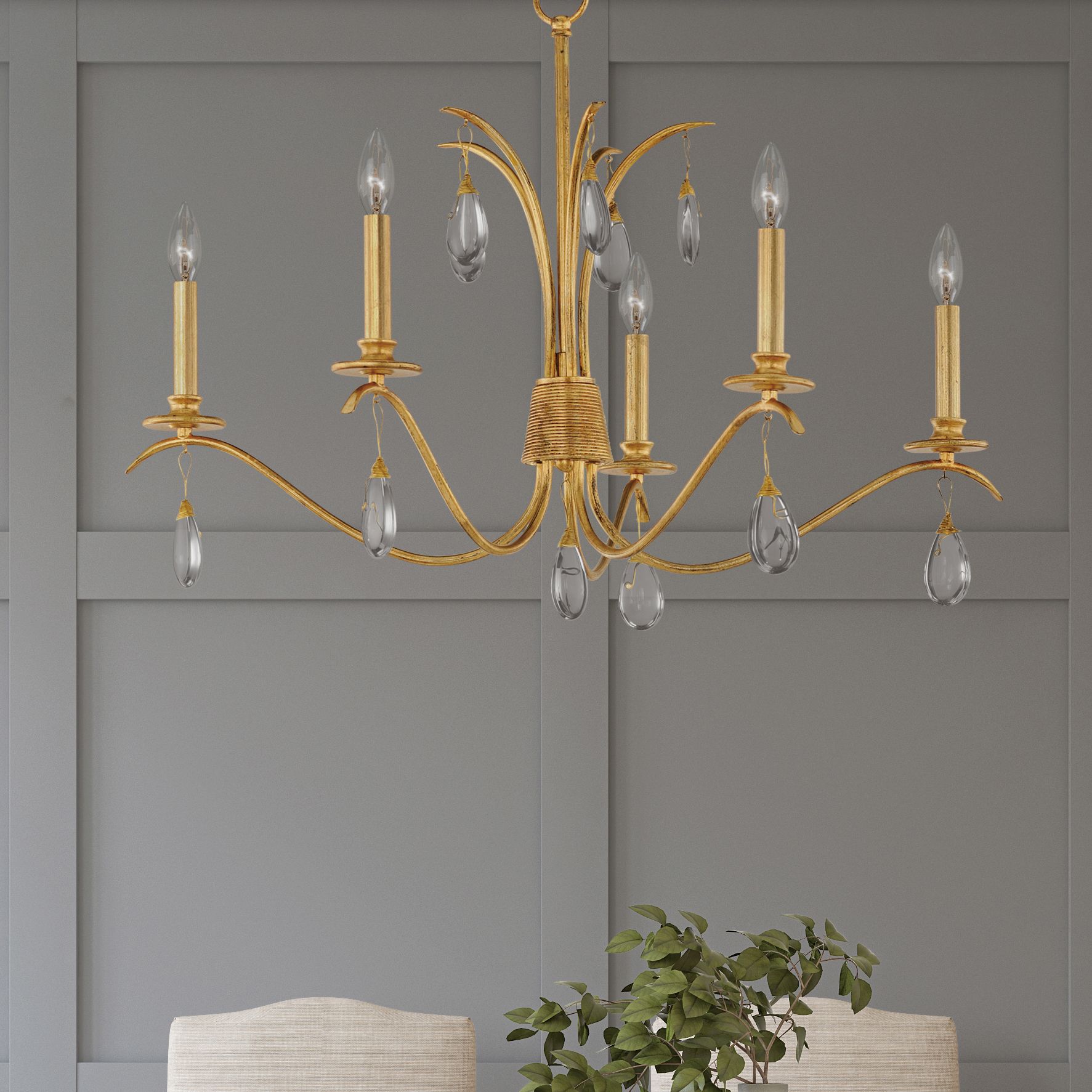 Currey & Company 31" Gold Crystal 8-Light Candelabra Chandelier