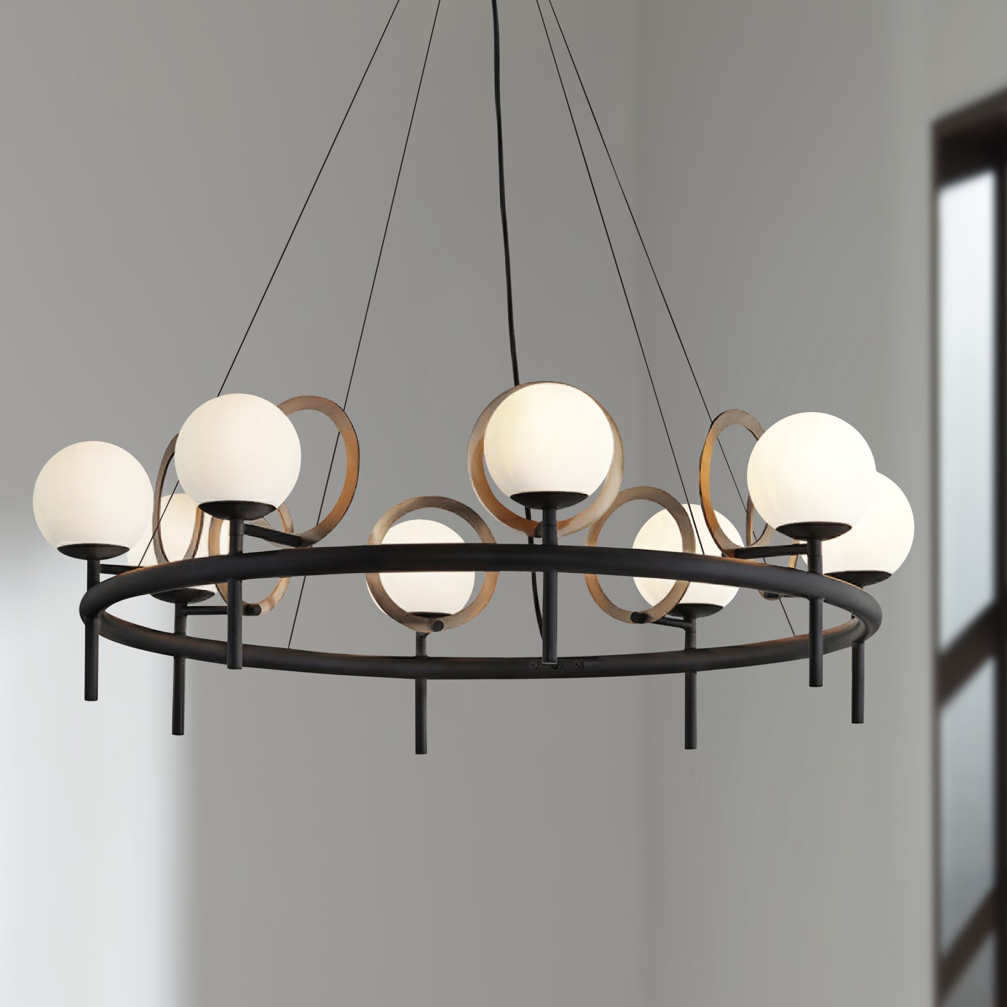 Fusionâ„¢ Halo 30"W Matte Black 8-Light LED Chandelier