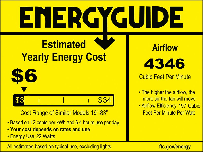 | Airflow | 4346 (Avg CFM) / 5748 (High CFM) |