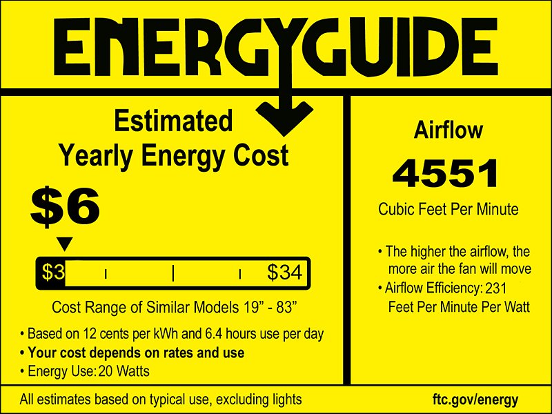 | Airflow | 4551 (Avg. CFM) / 6637 (High CFM) |