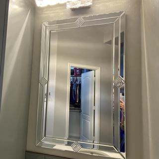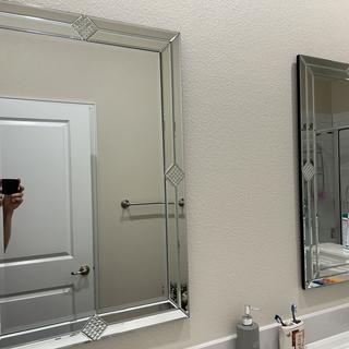 - Diamond-shaped accents on the frame. Beveled glass. Black MDF wood backing.