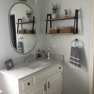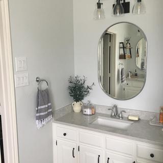 In a bronze finish, this three-light bath light is a striking choice, offering a touch of industrial charm to any vanity.