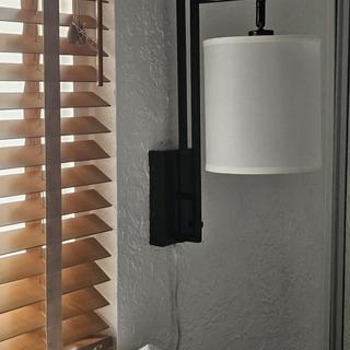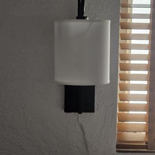 Brighten a seating area or bedside with the classic contemporary style of this plug-in wall lamp. From the Possini Euro Design brand, the lamp features a streamlined metal column in a matte black finish with a linen fabric shade for diffusing ambient light. Handy built-in USB ports are perfect for charging cell phones and other electronic devices. No electrician needed - simply attach to wall and plug into any standard outlet.