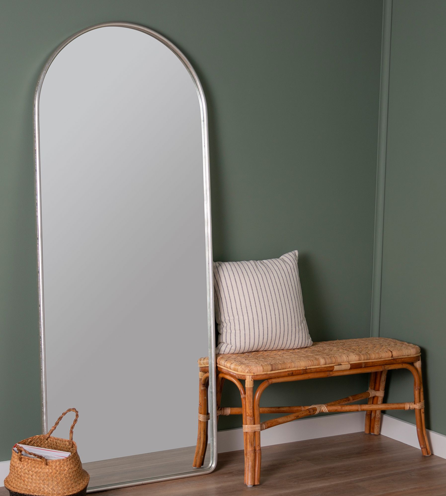 Colca Shiny Silver 28" x 68" Arched Floor Mirror