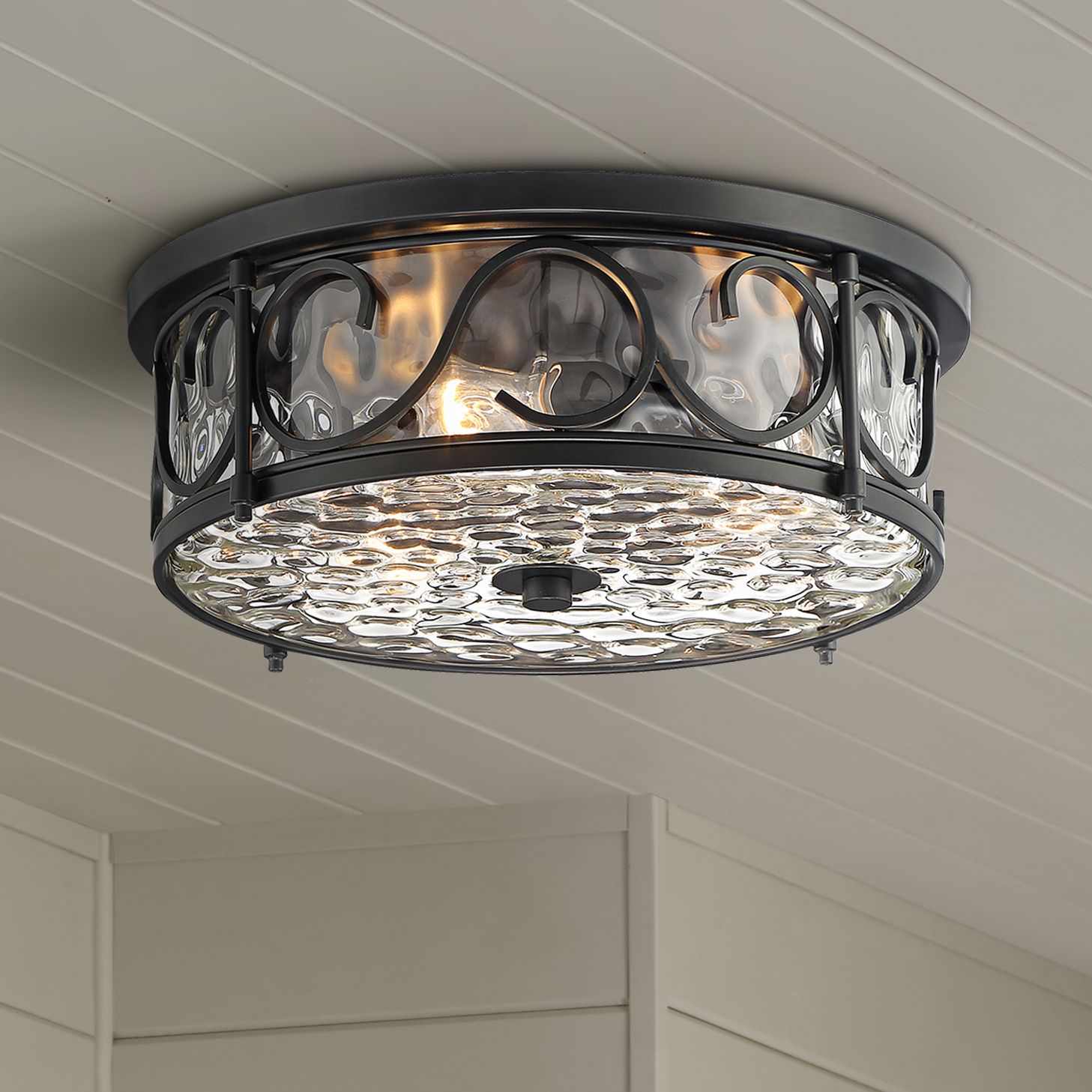 Paseo 17" Wide Hammered Glass Matte Black Outdoor Ceiling Light