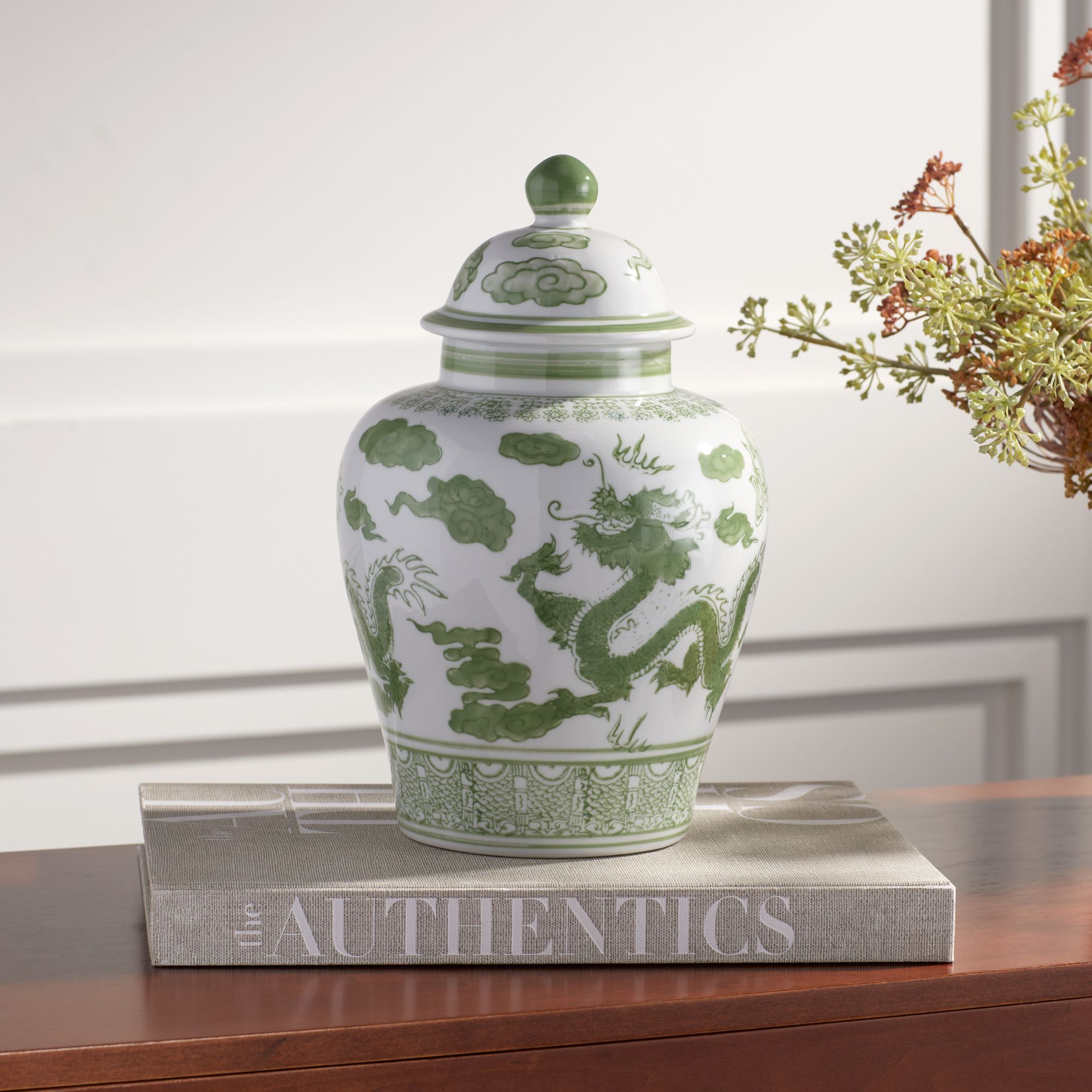 Sansui 12"H Green and White Ceramic Ginger Jar with Lid