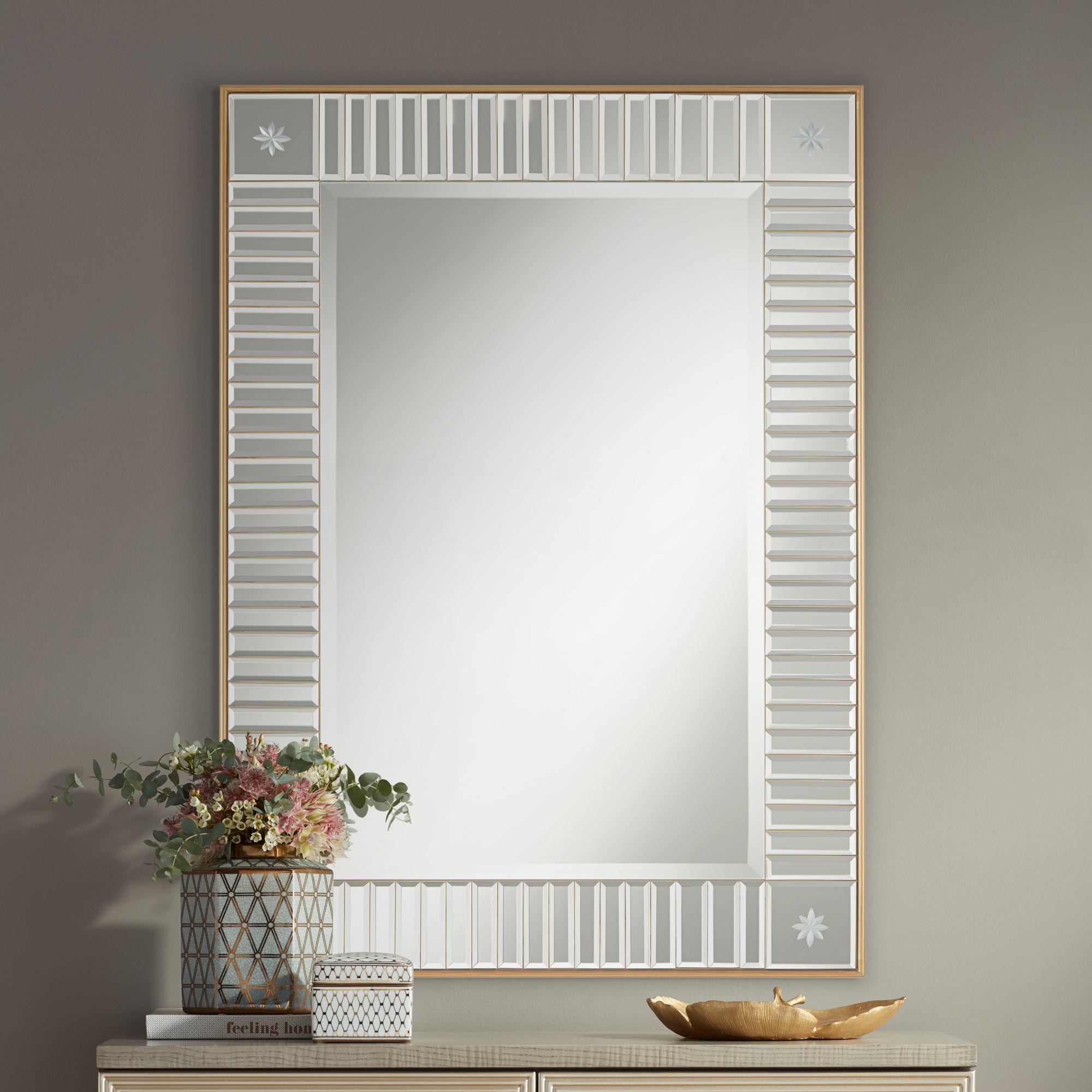 Jeneva Shiny Gold Leaf 27" x 40" Rectangular Wall Mirror