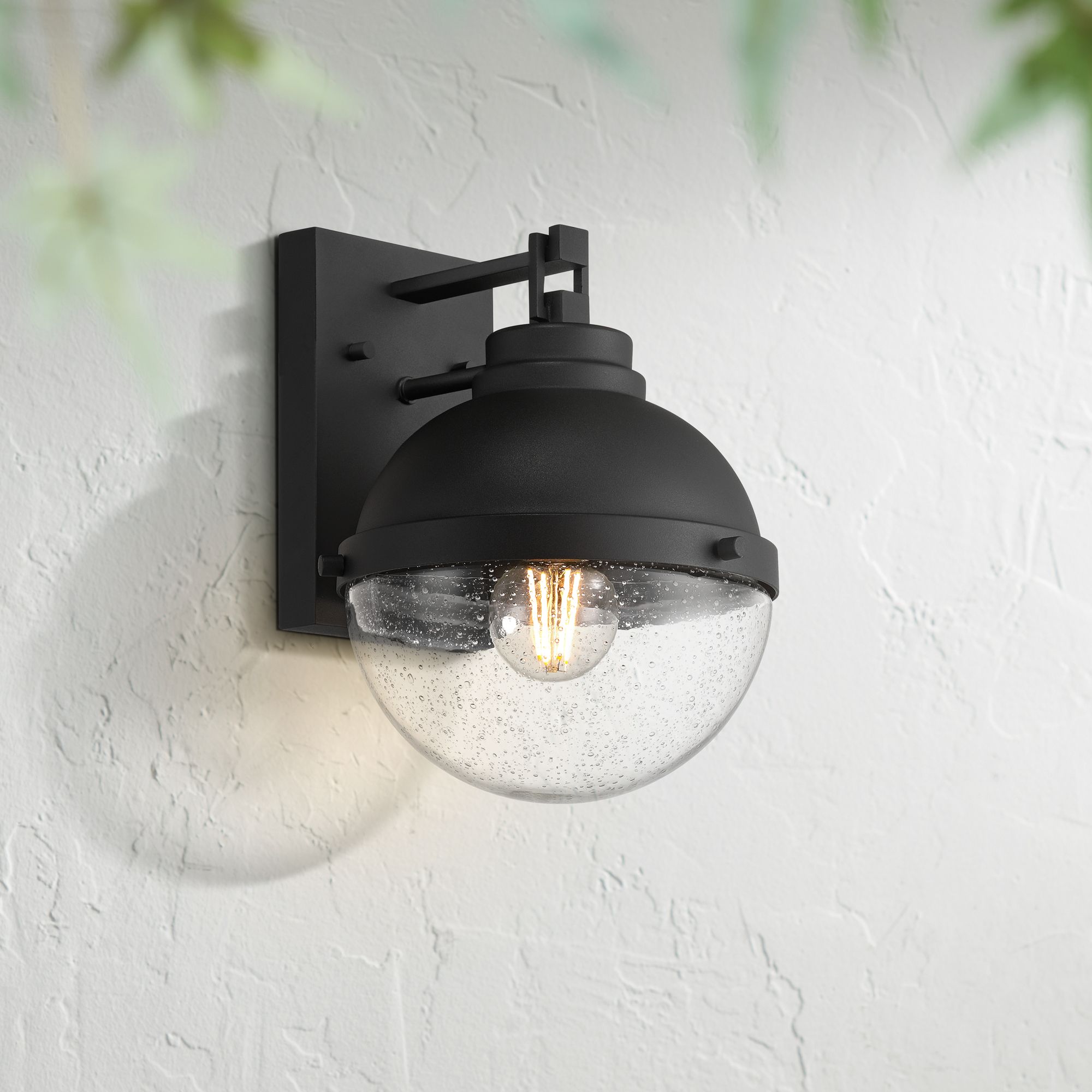 Possini Euro Ackerly 14" Textured Black Outdoor Lantern Wall Light