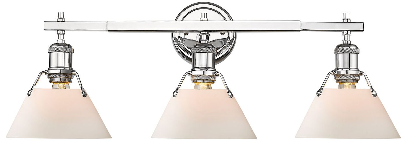 - Orwell 3-Light Bath Light is produced by Golden Lighting.