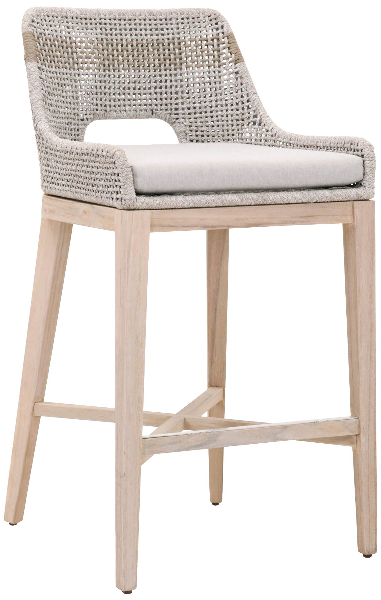 Tapestry Outdoor Barstool, Taupe & White Flat Rope, Taupe Stripe