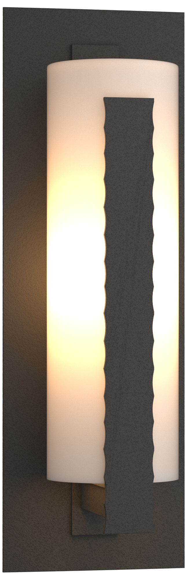 Forged Vertical Bars Large Outdoor Sconce - Iron Finish - Opal Glass