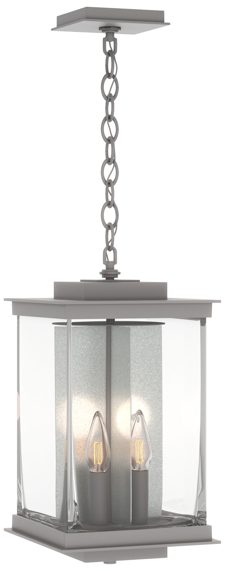 Polaris 13.4"H 4-Light Silver Accented Steel Outdoor Pendant w/ Clear