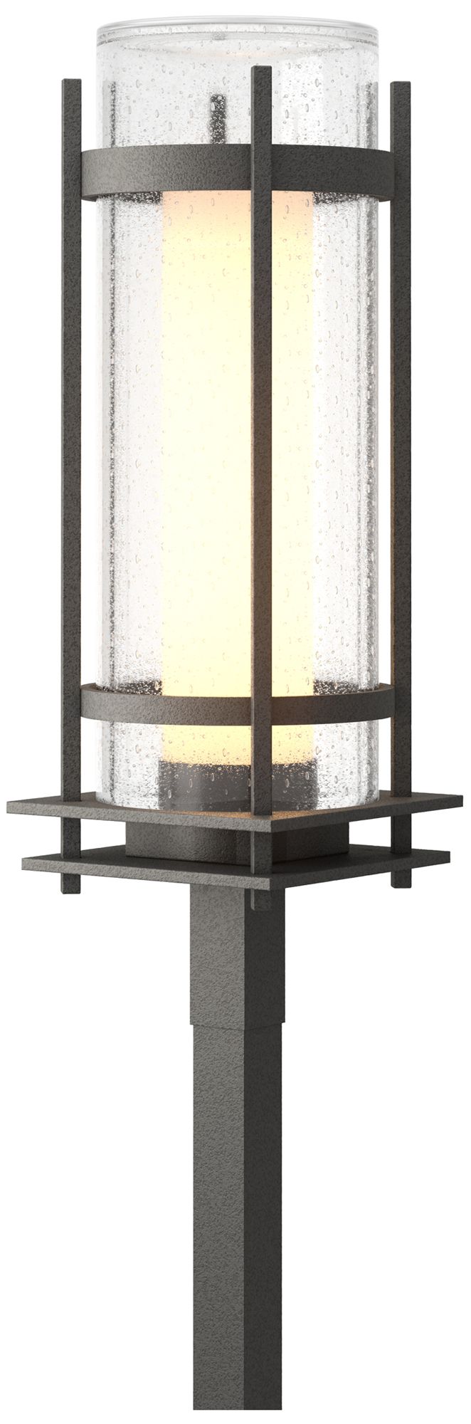 Banded Coastal Natural Iron Outdoor Post Light With Opal & Seeded Glass