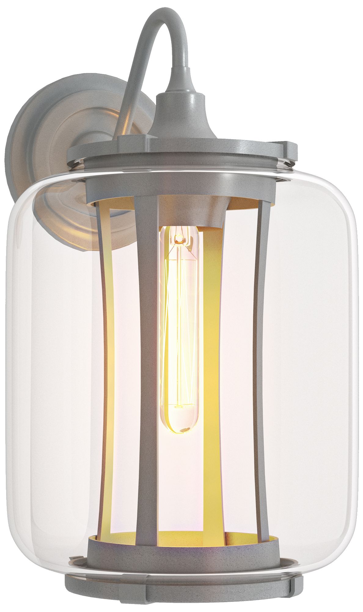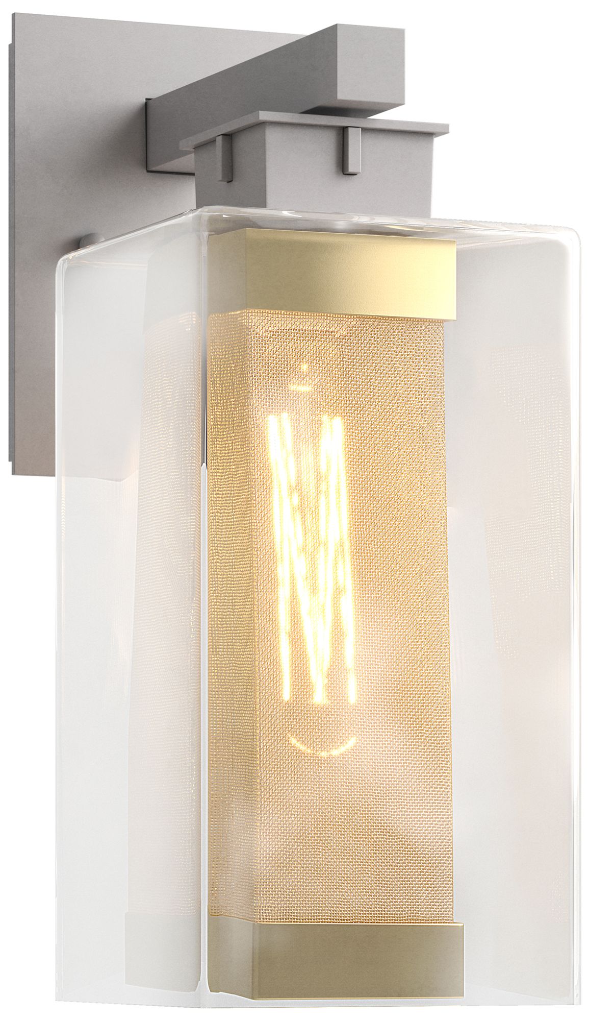 Kingston Outdoor Large Sconce - Steel Finish - Gold Accents - Clear Glass