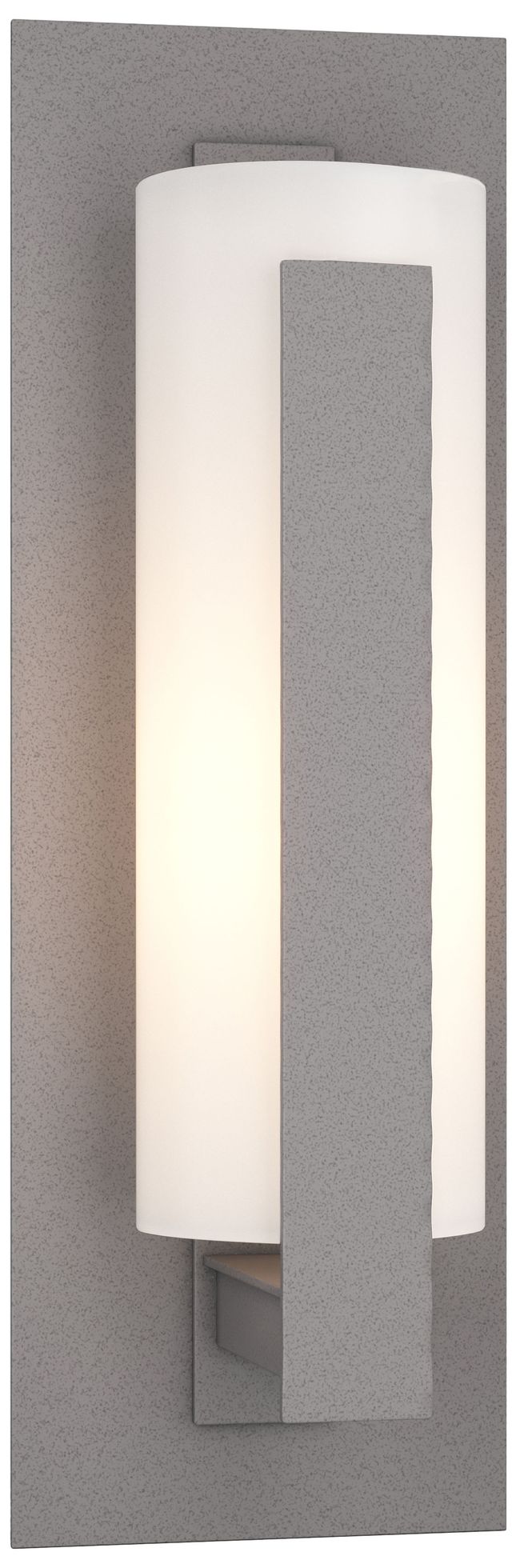 Hubbardton Forge Banded Top Plate Outdoor Sconce Iron Finish Opal Glass