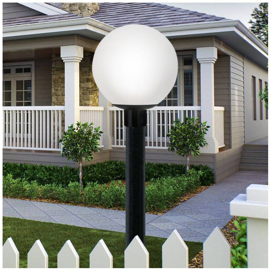 Wave Lighting 10" Acrylic Globe Opal Post Top Light Black Poly Fitter