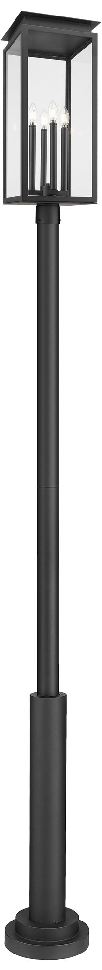 Hamilton 95" High Black 4-Head Outdoor Post Light with Base