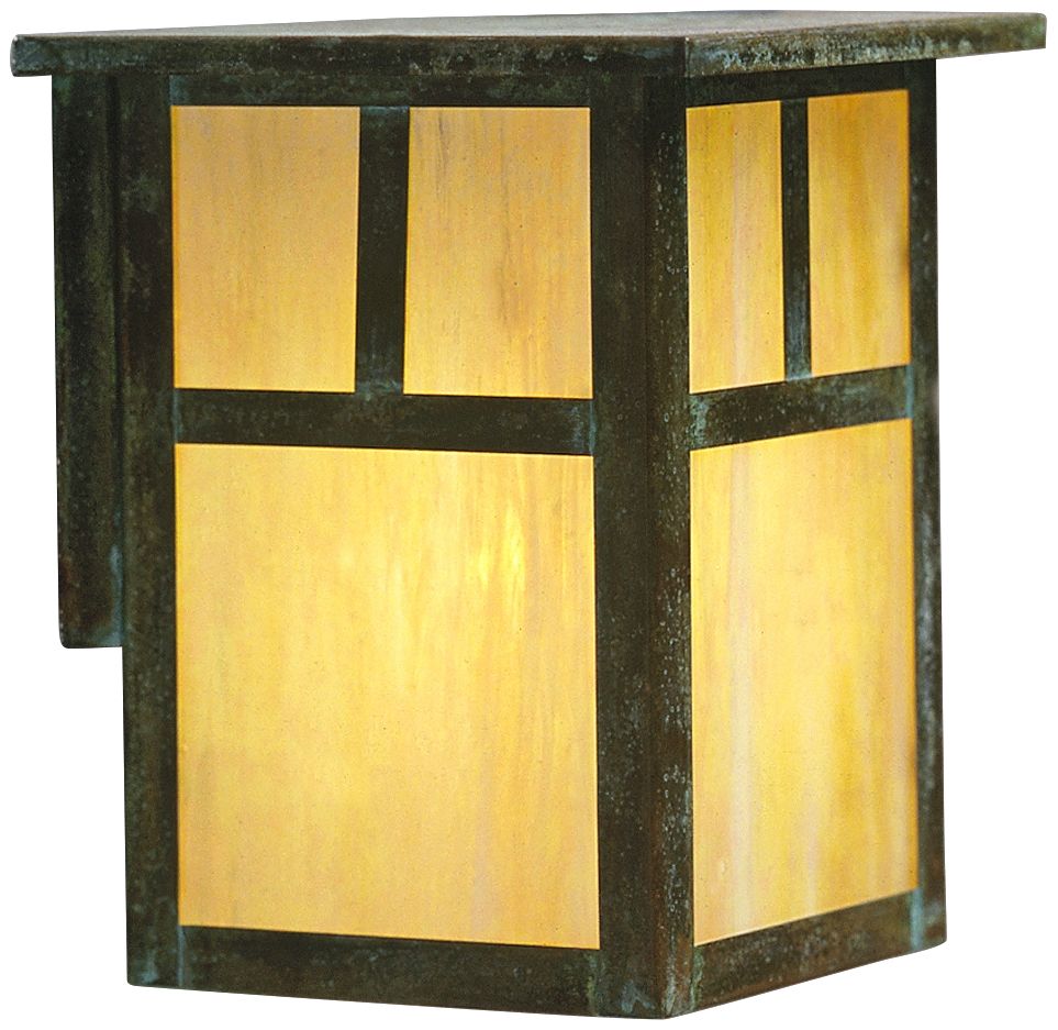 Mission 10 1/2"H Gold Glass Lantern Outdoor Wall Light