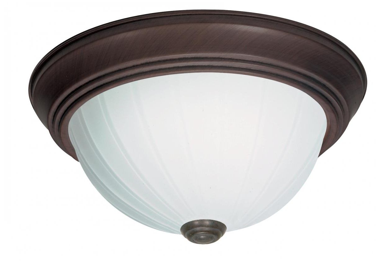 2 Light - 11" Flush with Frosted Melon Glass - Old Bronze Finish