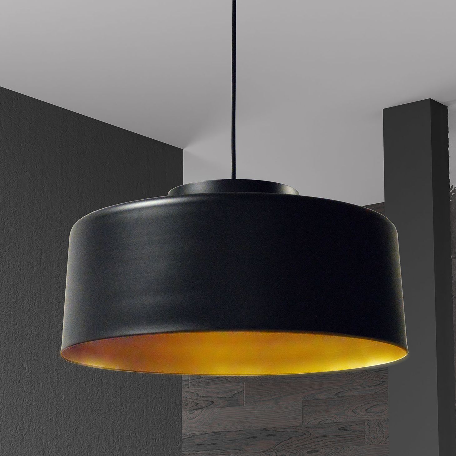 Kup 19 3/4" Wide Painted Black and Gold Drum Pendant Light