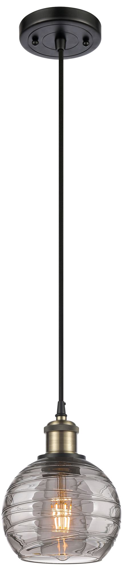 Ballston Athens 5.88"W Black Brass Corded Mini Pendant w/ Smoke Swirl