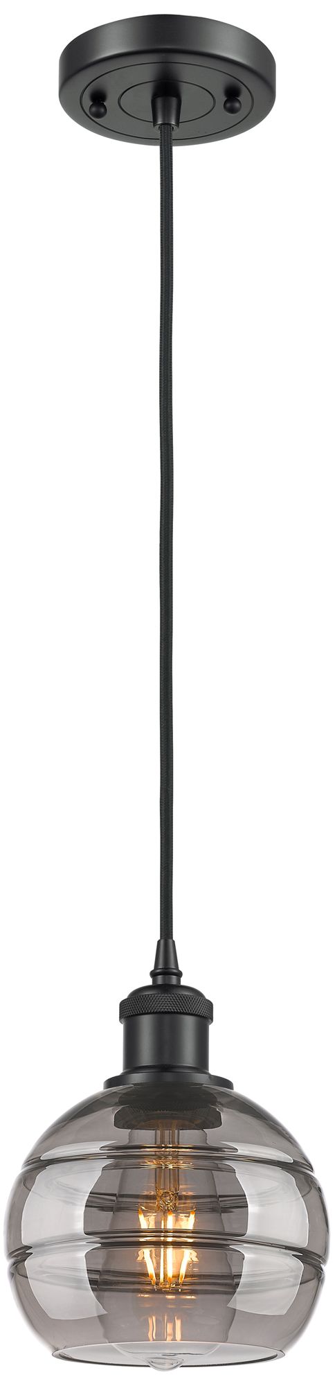Ballston Rochester 5.88"W Matte Black Corded Mini Pendant w/ Smoke Sha