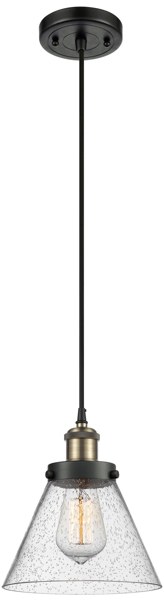 Ballston Urban Cone 8" LED Mini Pendant - Black Antique Brass - Seedy