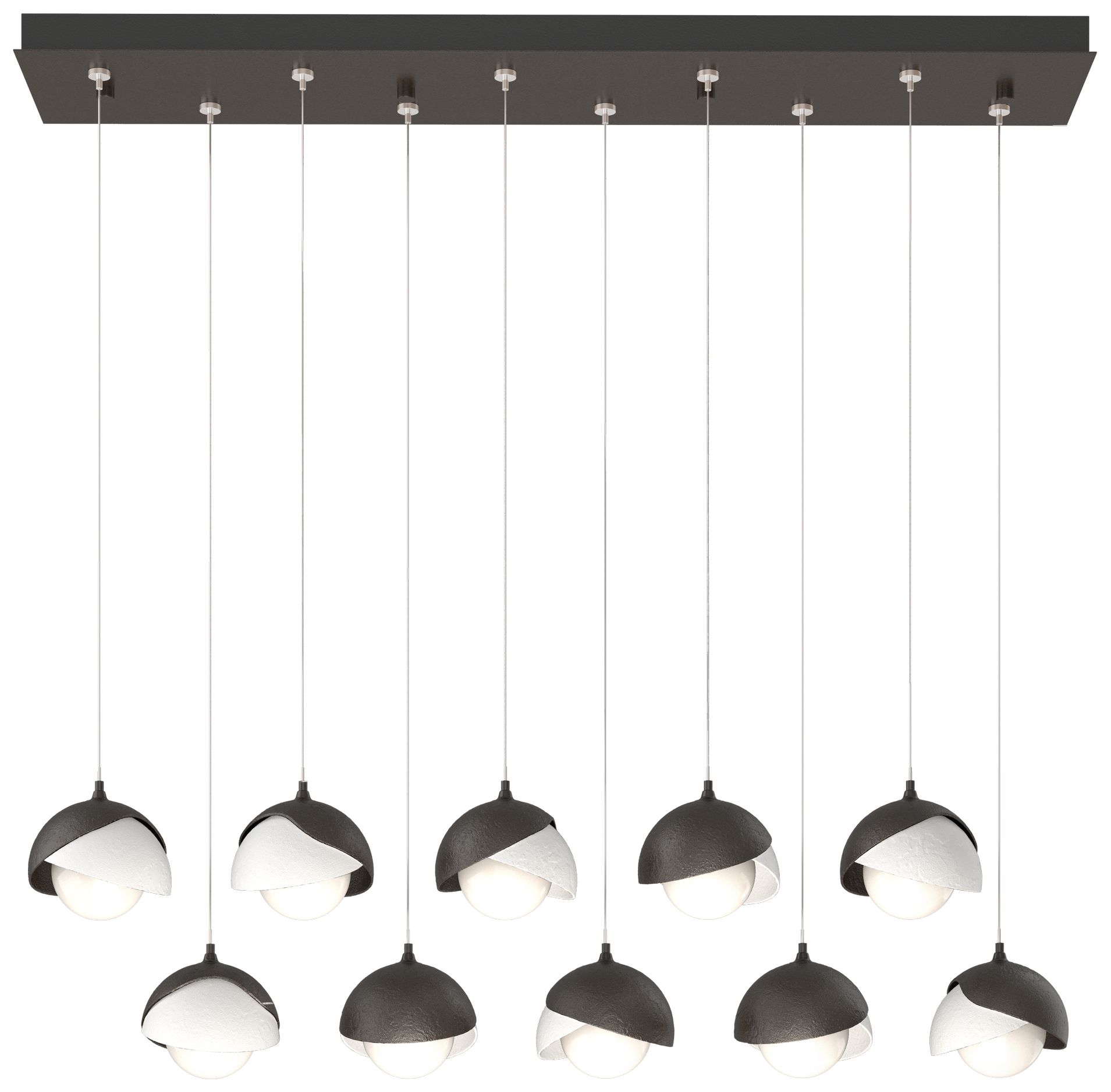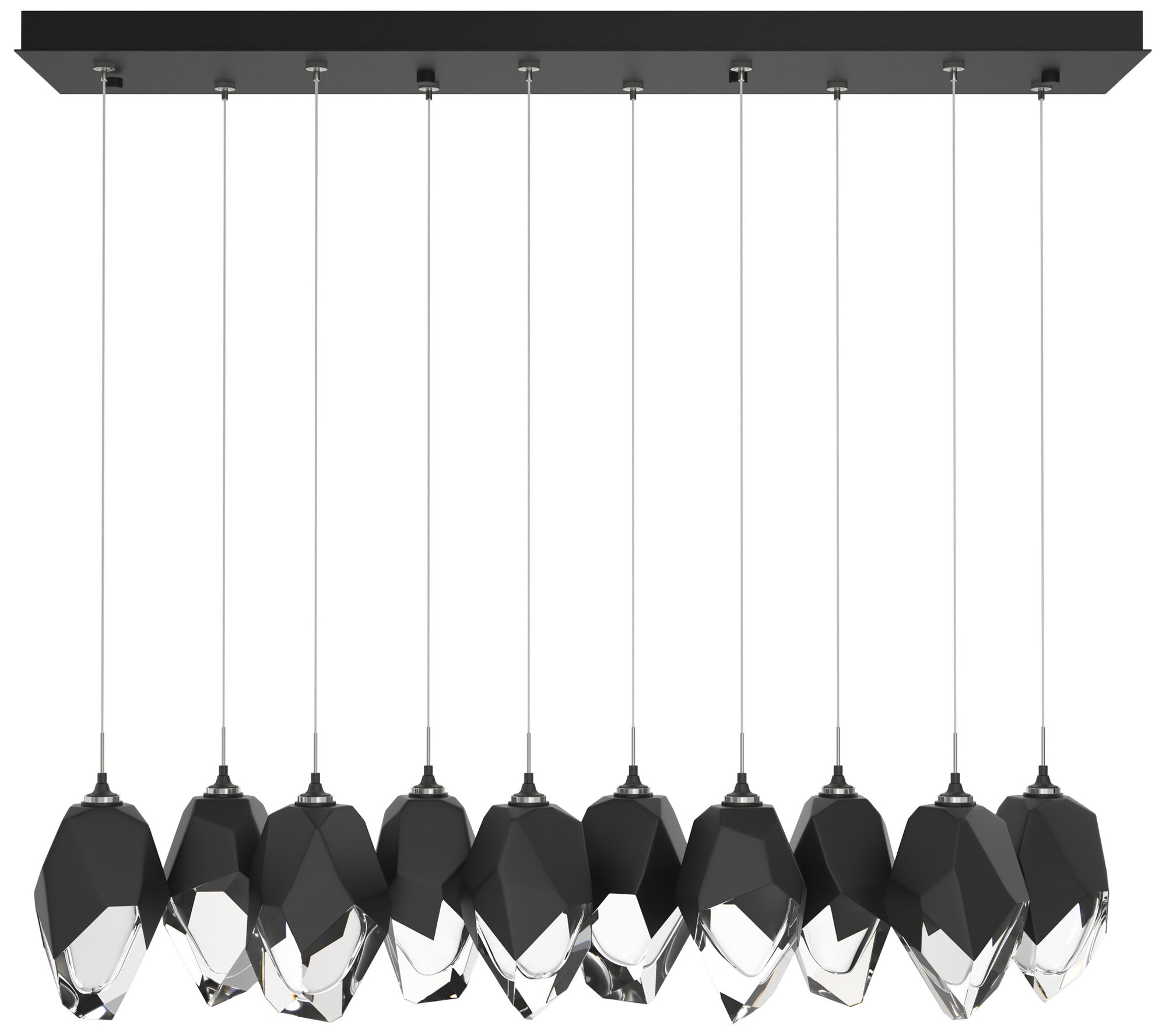 Mobius 10-Light Rectangular Pendant - Black - Frost Shade - Standard Height
