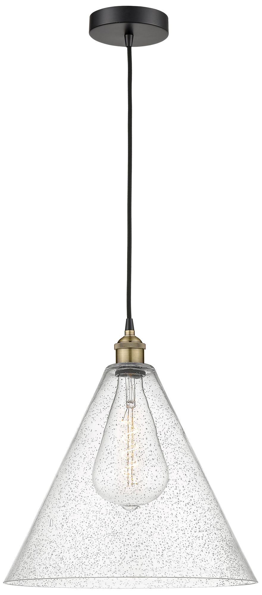Edison Cone 16" Wide Black Brass Corded Pendant With Seedy Shade